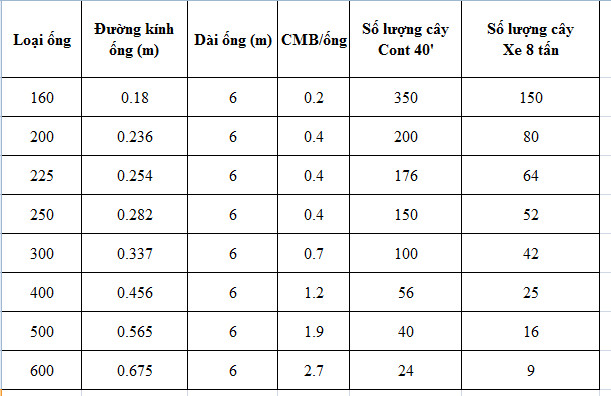 Do ống khá công kềnh. Chúng tôi xin công bố khả năng vận tải của ống HDPE với cont 80" để quý khách hàng tham khảo