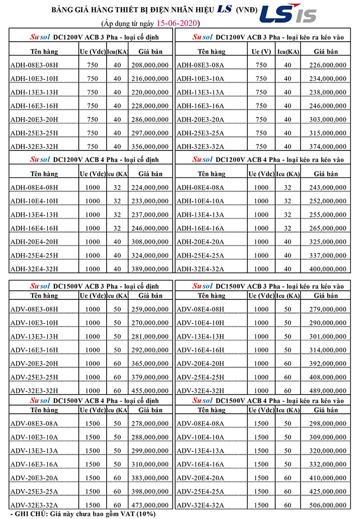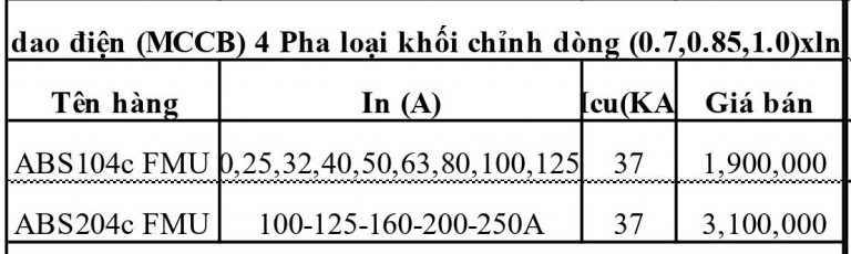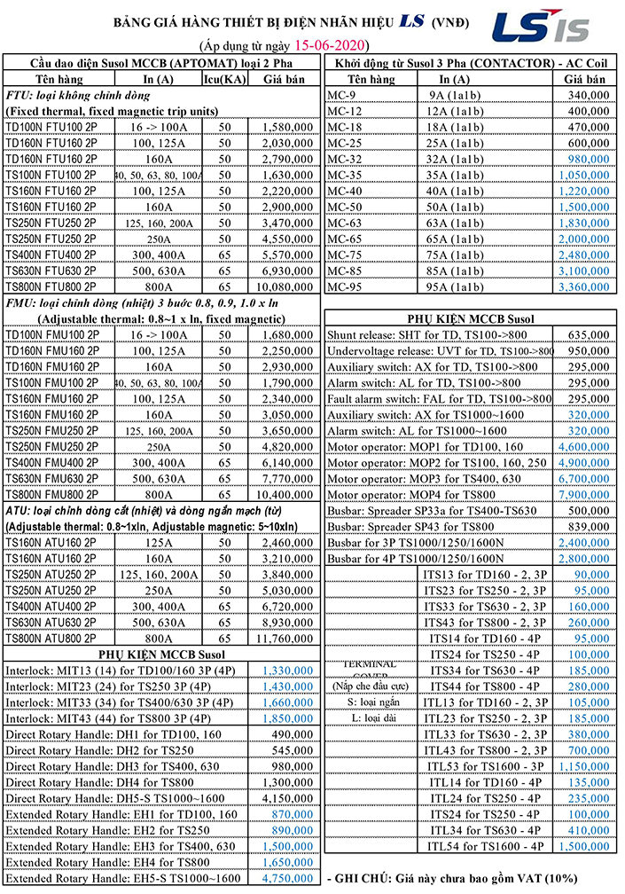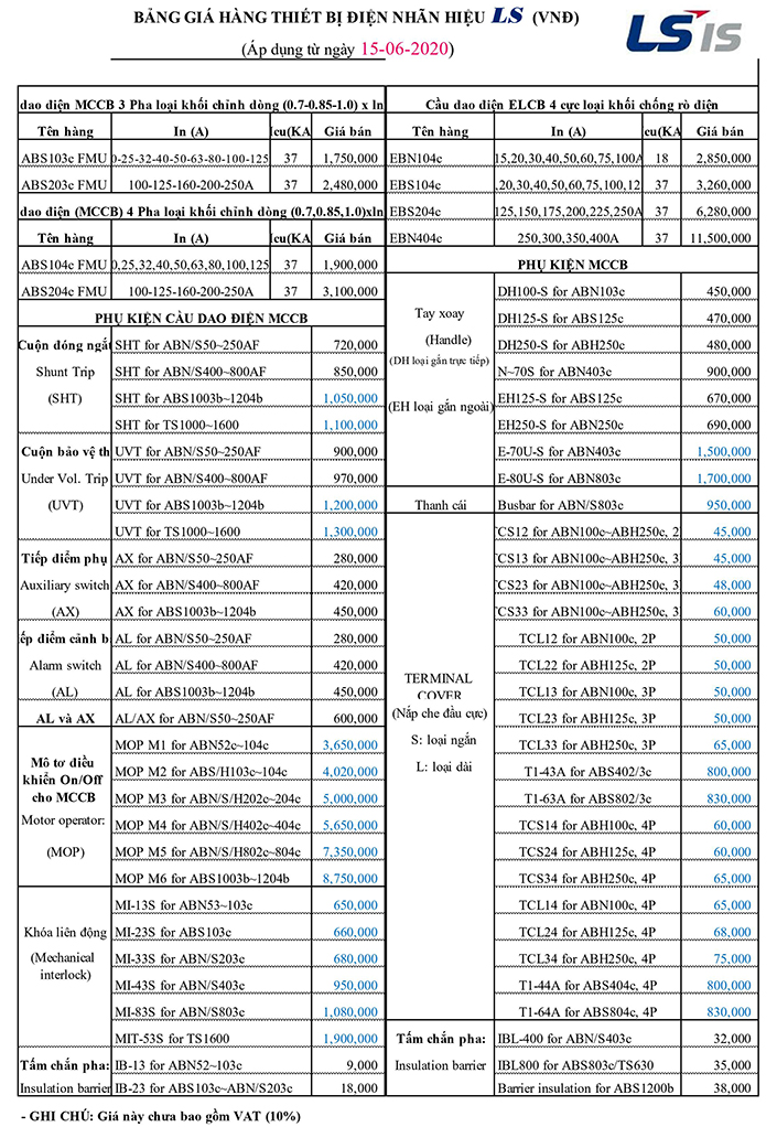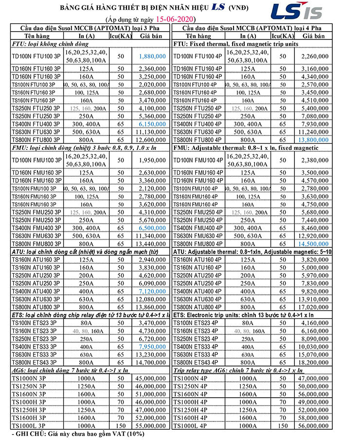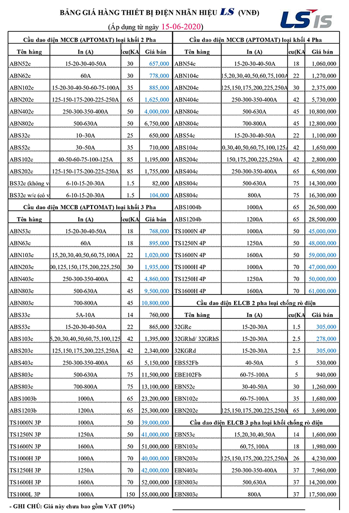 BẢNG GIÁ MCCB LS MỚI NHẤT