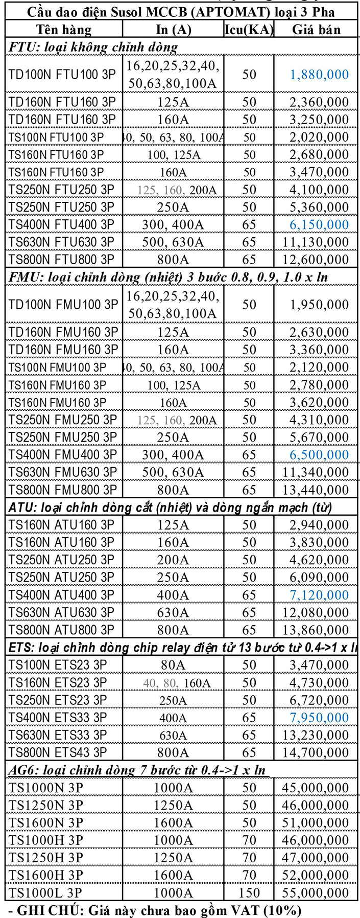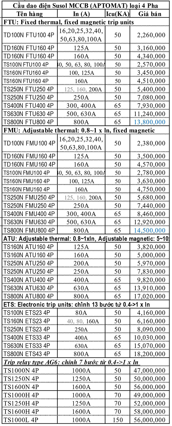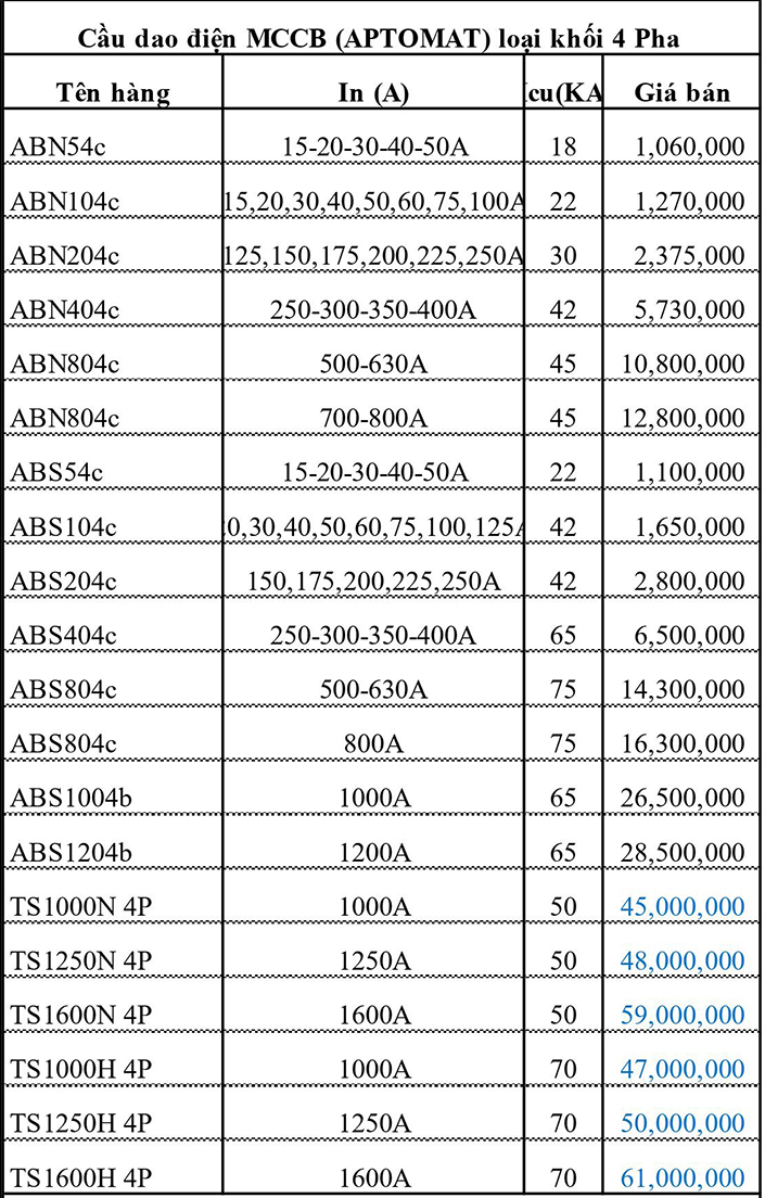 BẢNG GIÁ MCCB LS MỚI NHẤT