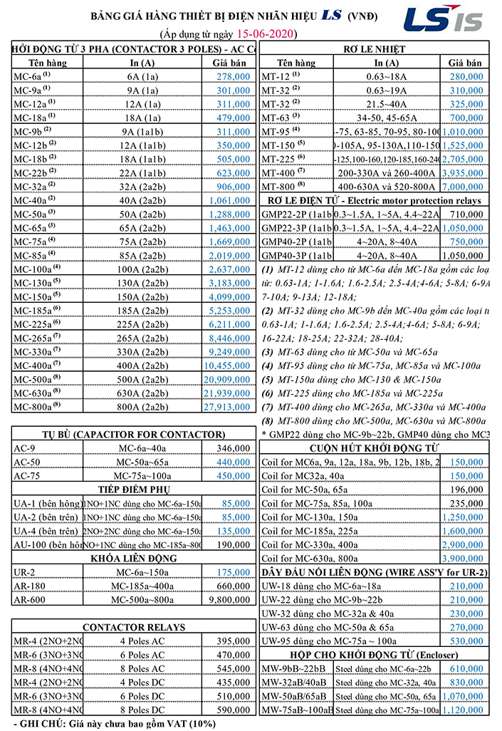 Bảng giá thiết bị điện Ls 2021 mới nhất