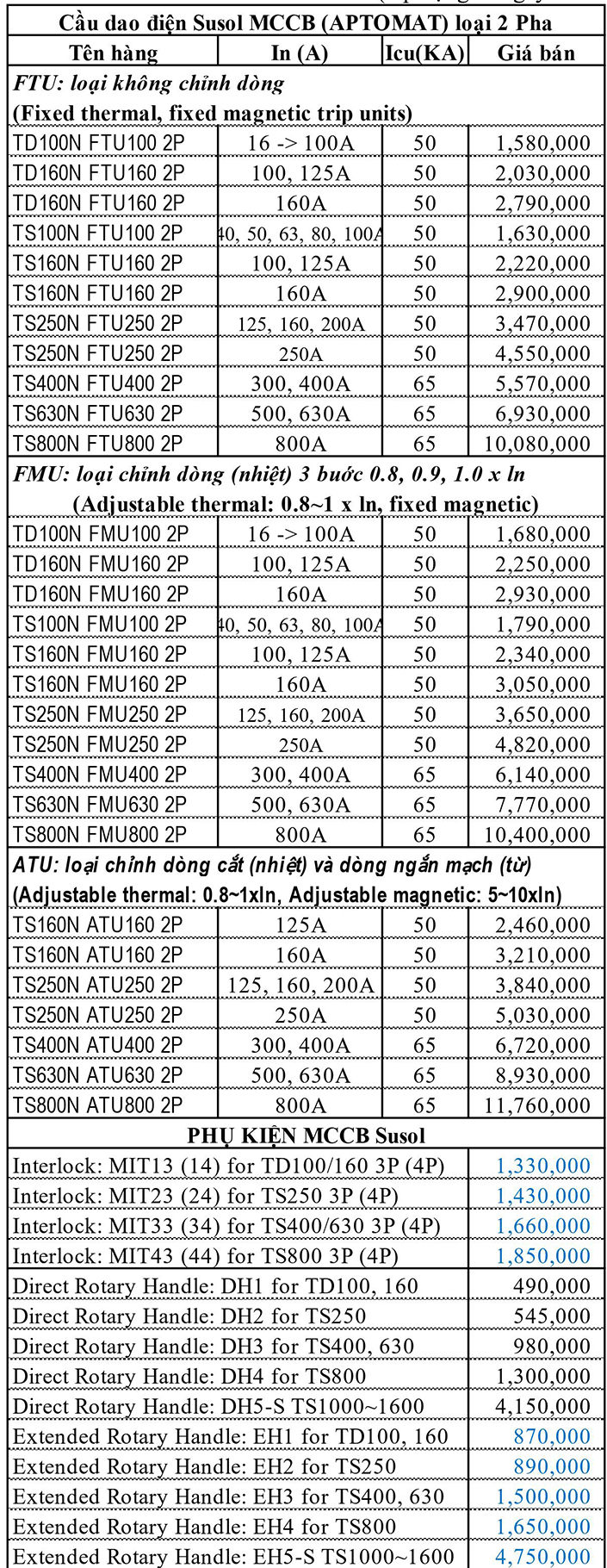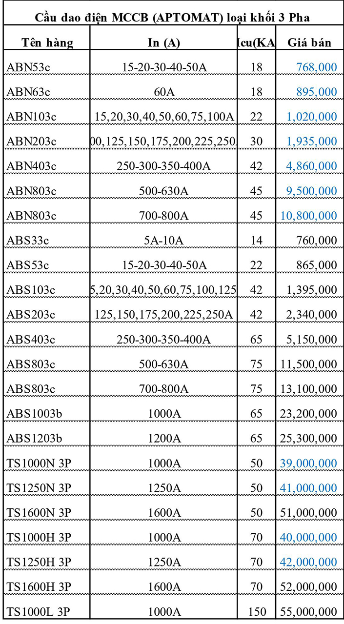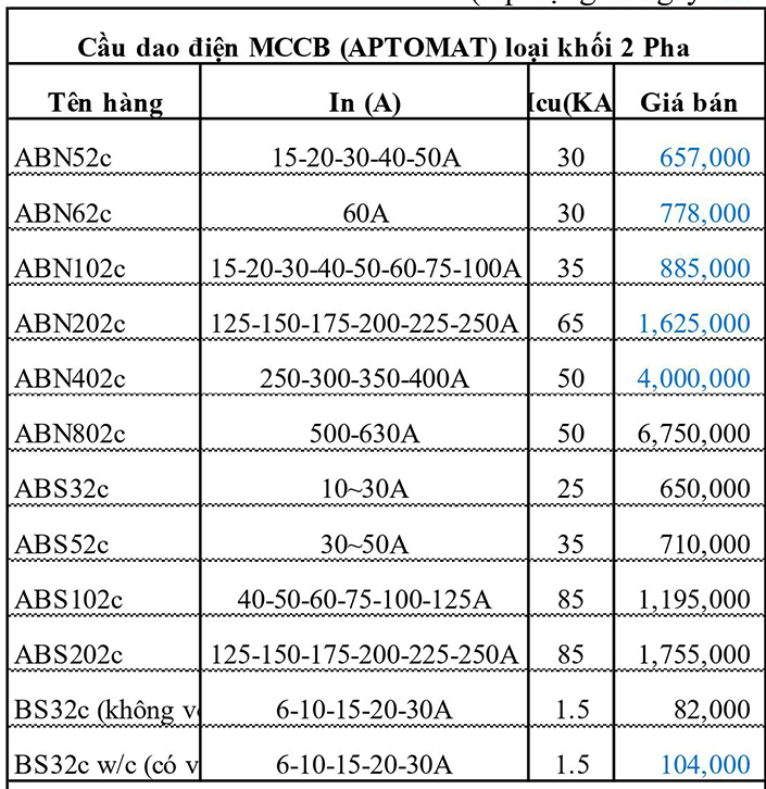 BẢNG GIÁ MCB LS 2021 MỚI NHẤT