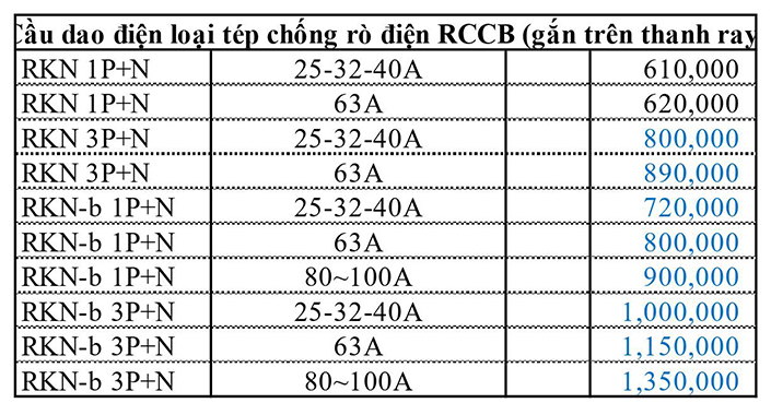 Bảng Giá Cầu dao điện