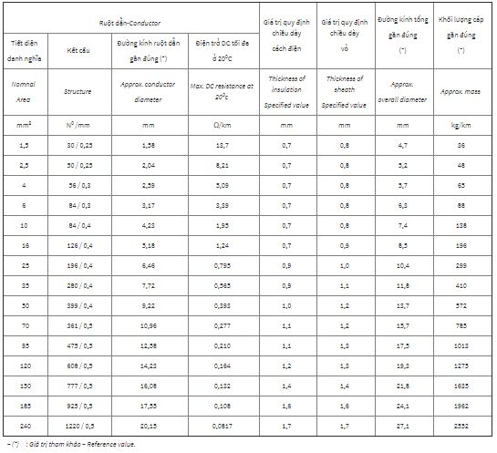 - Nhiệt độ làm việc dài hạn của ruột dẫn: 90 0C.