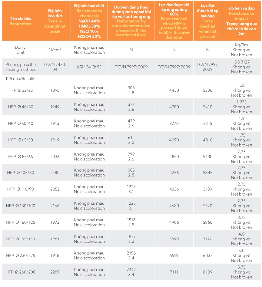 THÔNG SỐ KỸ THUẬT ỐNG NHỰA XOẮN HDPE